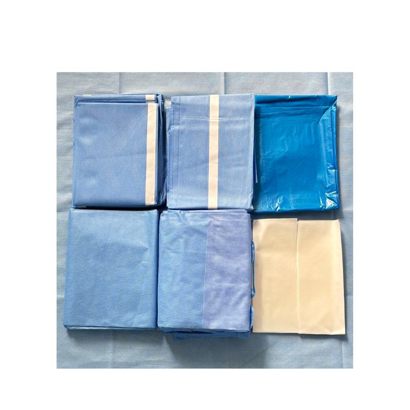 1. Liina, 175*160cm, 40g SMS-kangas, 2cm175cm kaksipuolinen teippi kiinnitettynä, 1 kpl 2. Liinalevy: 240150cm, 40g SMS-kangas, 2cm240cm kaksipuolinen teippi kiinnitettynä, 1 kpl 3. Liinalevy: 9075 cm, 40 g SMS-kangasta, 2 cm90 cm:n kaksipuolinen teippi kiinnitettynä, 2 kpl 4. Meiya-teippi: 145*78cm, 1 kpl 5. Lääketieteellinen teippi: 10*50cm, 2 kpl 6. Leikkauspuku: 130*150 cm, 40 g SMS-kangasta, 2 osaa 7. Lääkintäpyyhe: 40*40 cm, 70 g helmiäispuuvillaa, 2 kpl 8. Käärityskangas: 100*100 cm, 35 g SMS-kangasta, 1 kpl |
